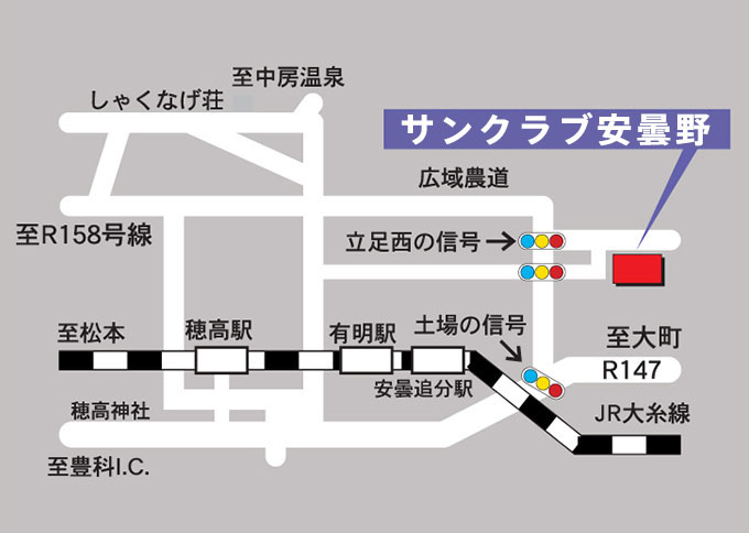 | 所在地 | サンクラブ安曇野 〒399-8301 長野県安曇野市穂高有明5718-94 TEL: 0263-83-3490 |